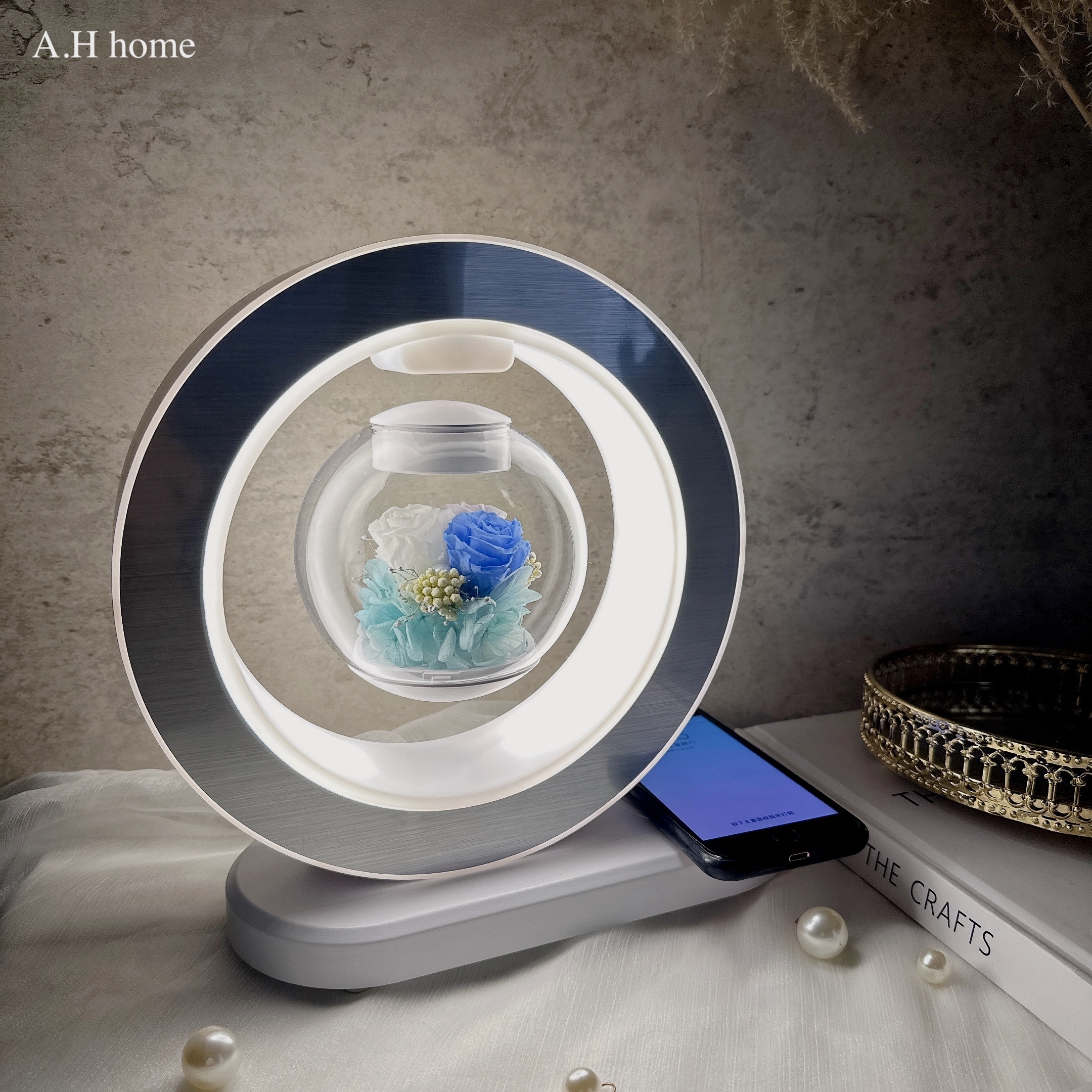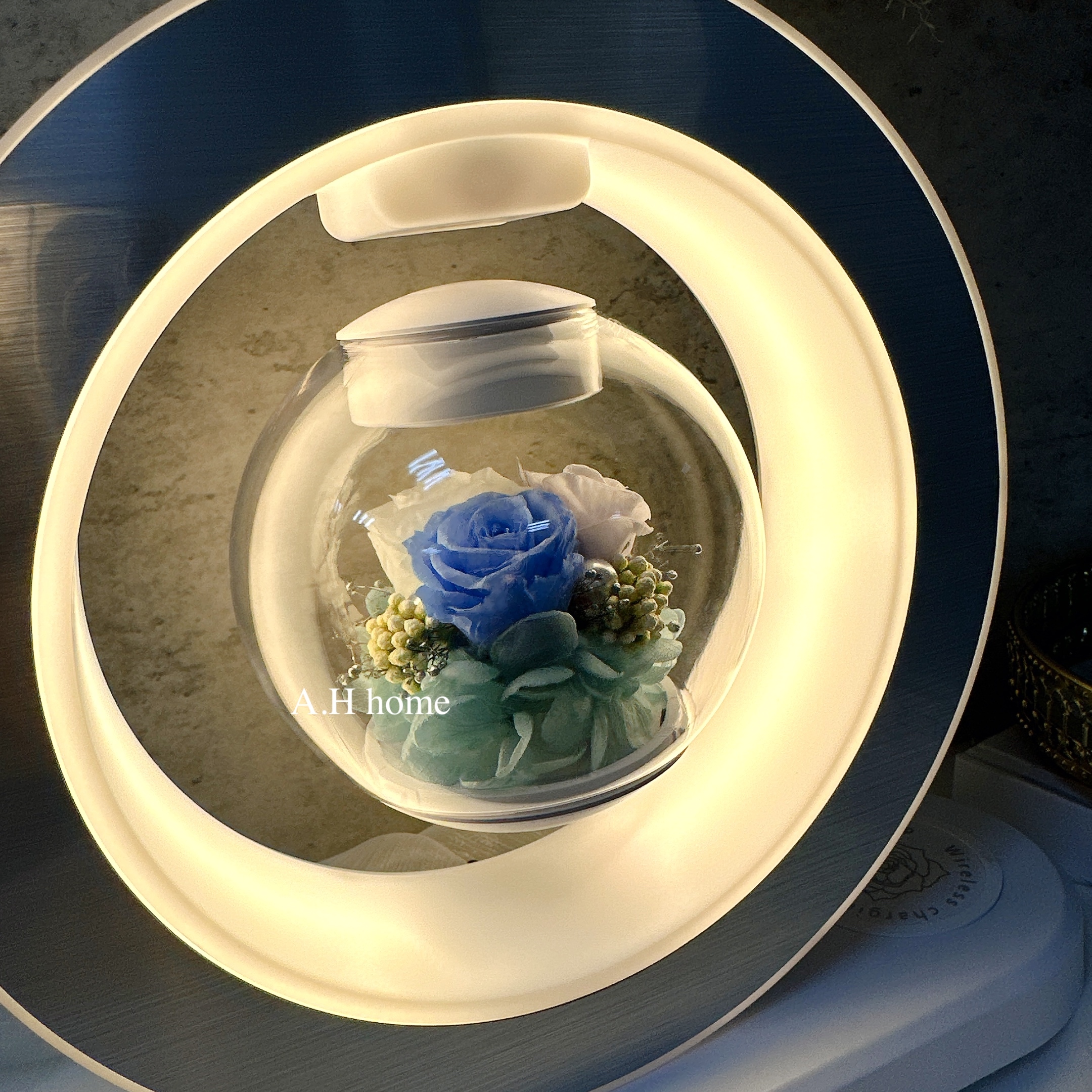 / ins懸浮永生花無線充電藍芽音響 /