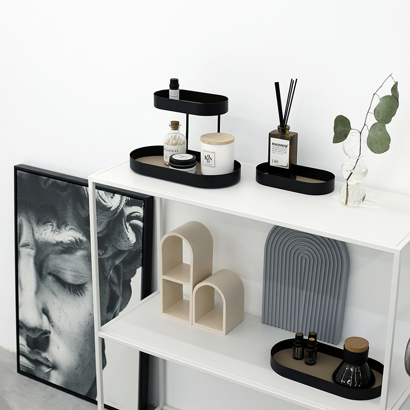 / 北歐鐵藝皮革雙層收納架 /