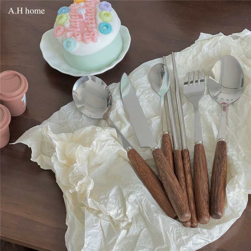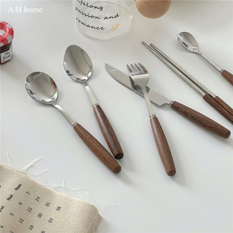 / 韓國ins復古原木不銹鋼餐具 /