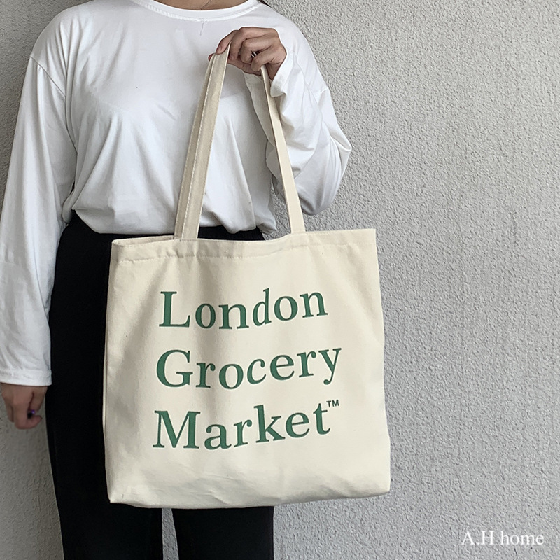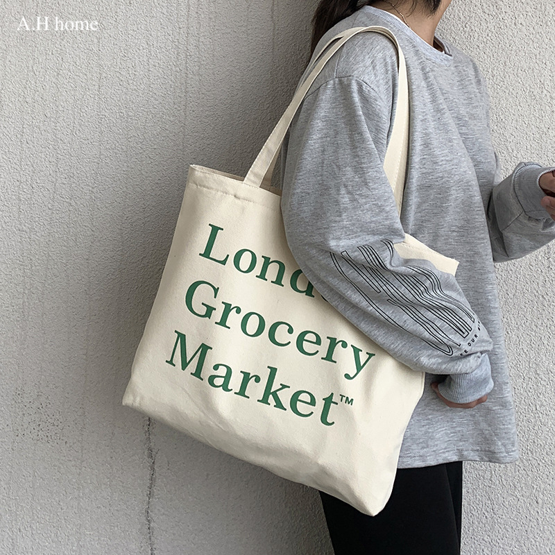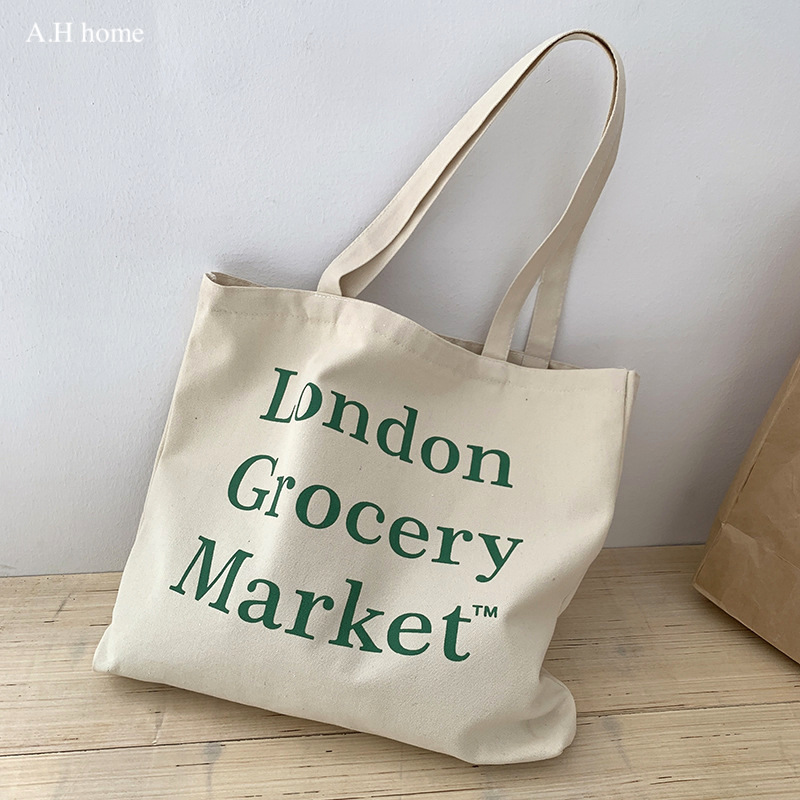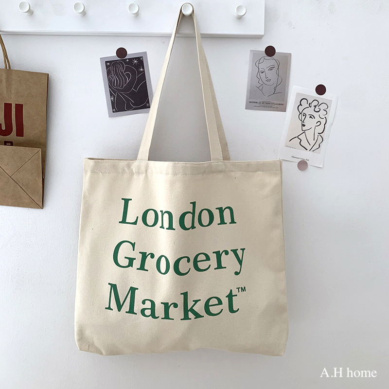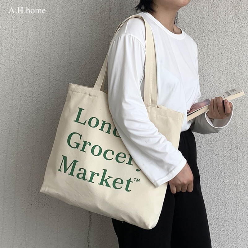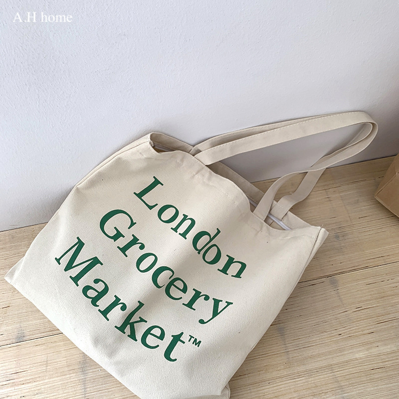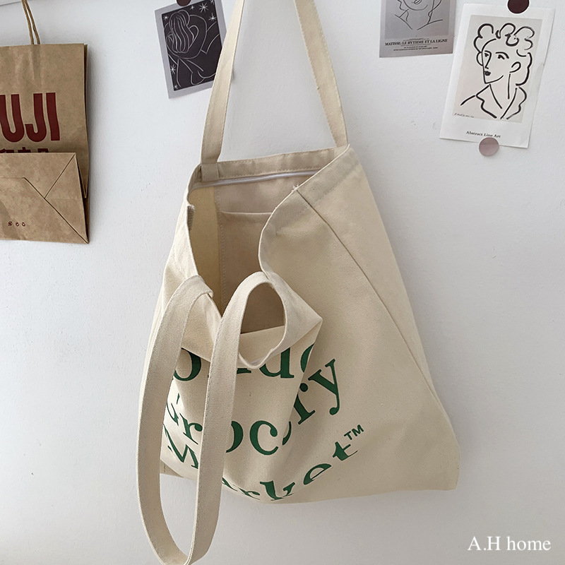 / 韓國ins綠色字母拉鏈帆布包 /