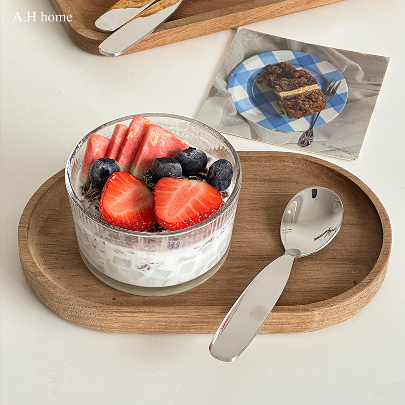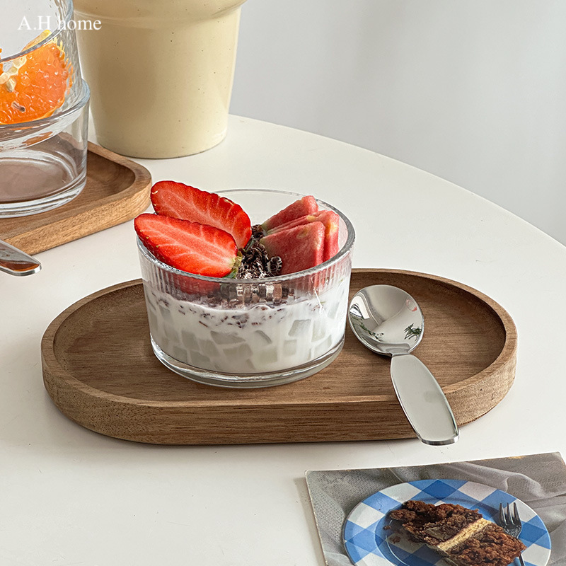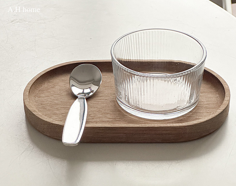 【材質】玻璃碗 原木托盤