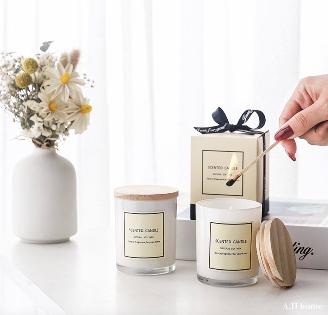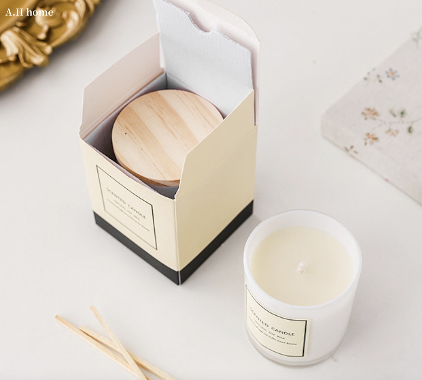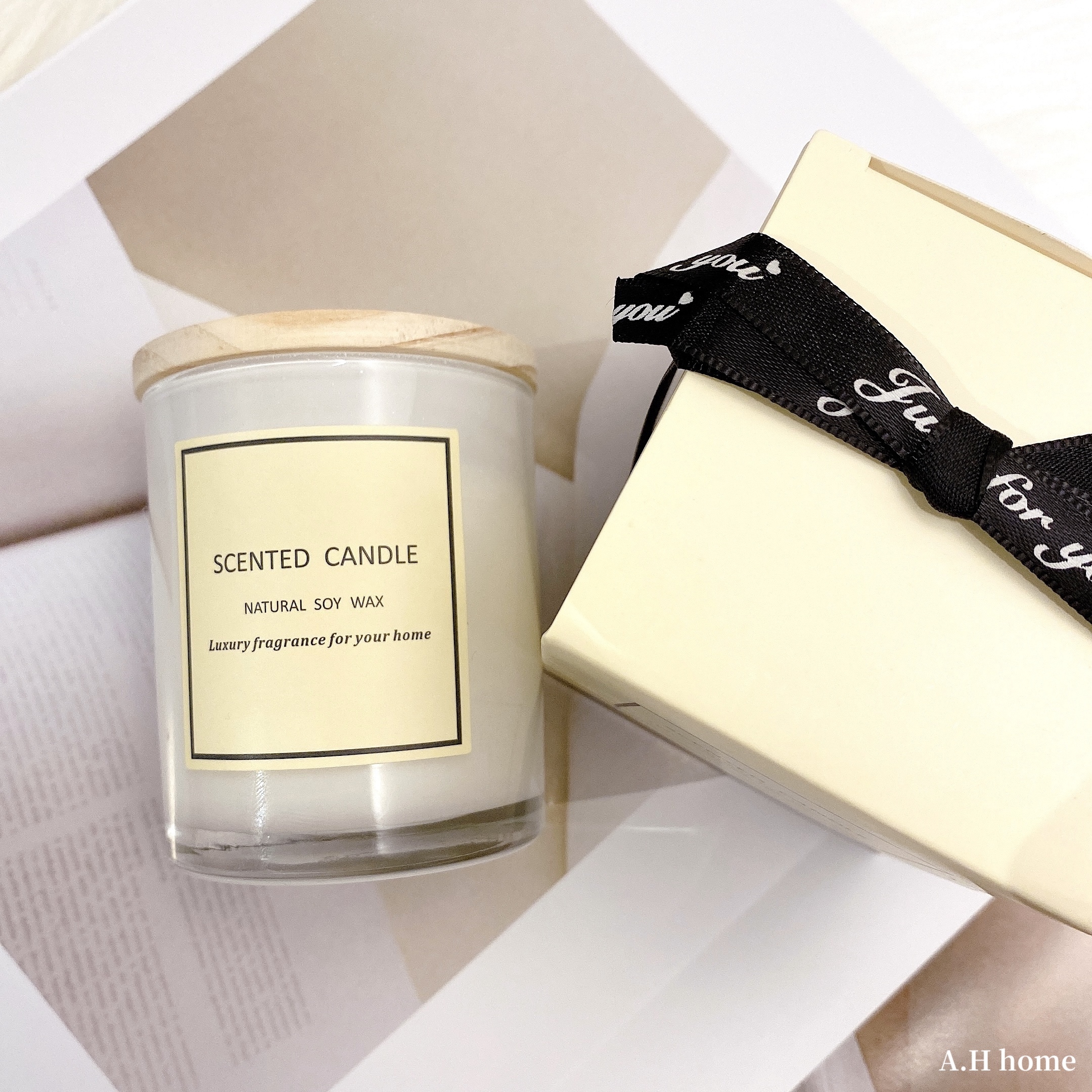 這顆真的很美#人見人愛款!可愛的奶油色標籤貼紙,配上白底微透瓶身,實品非常有質感,木蓋可以完全密合瓶身,防止灰塵跑進去,紙盒都有附上緞帶,送禮也非常得體唷♡