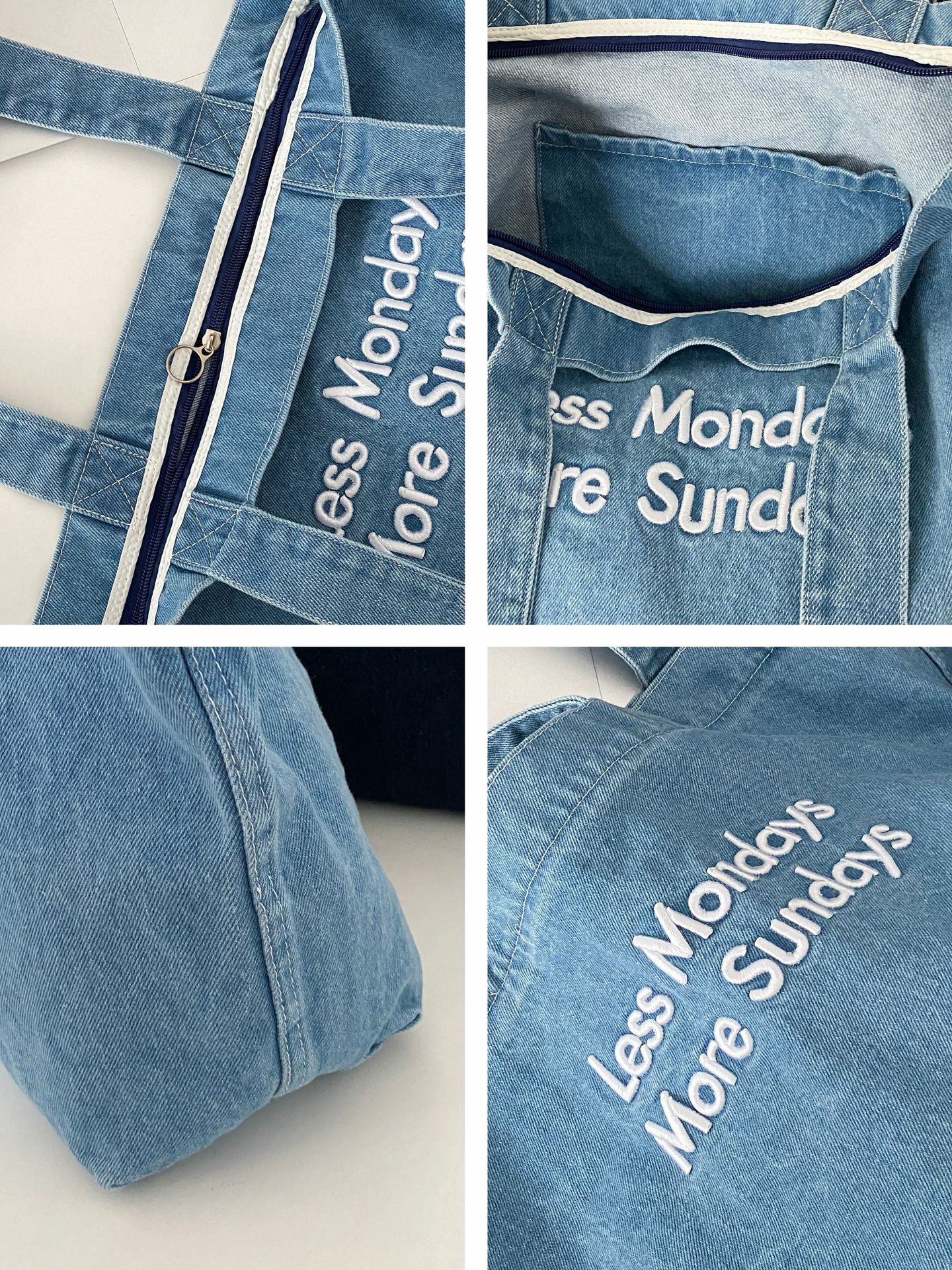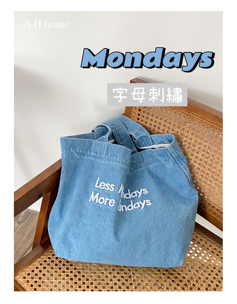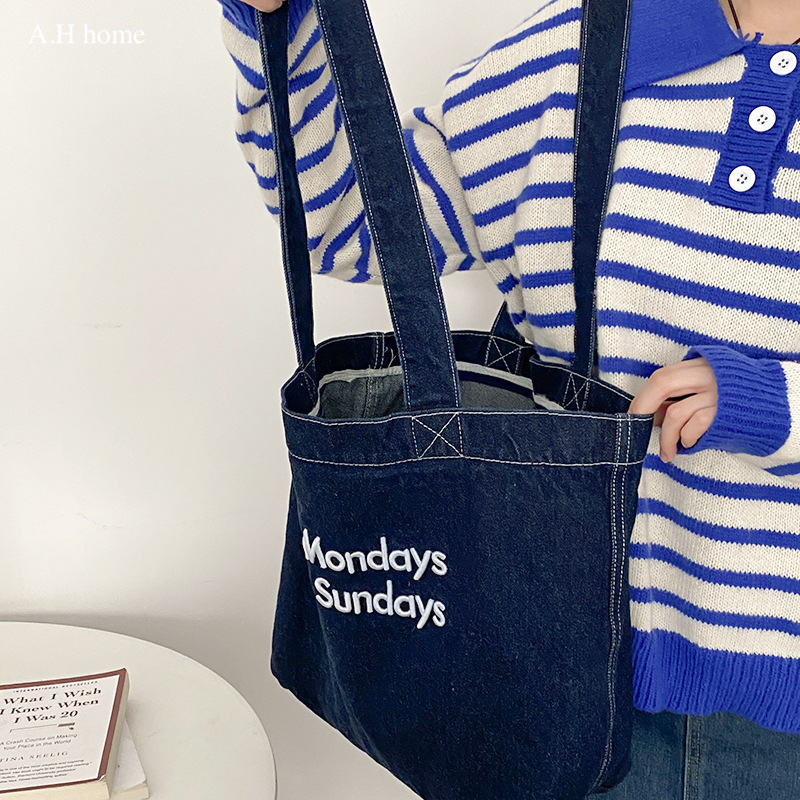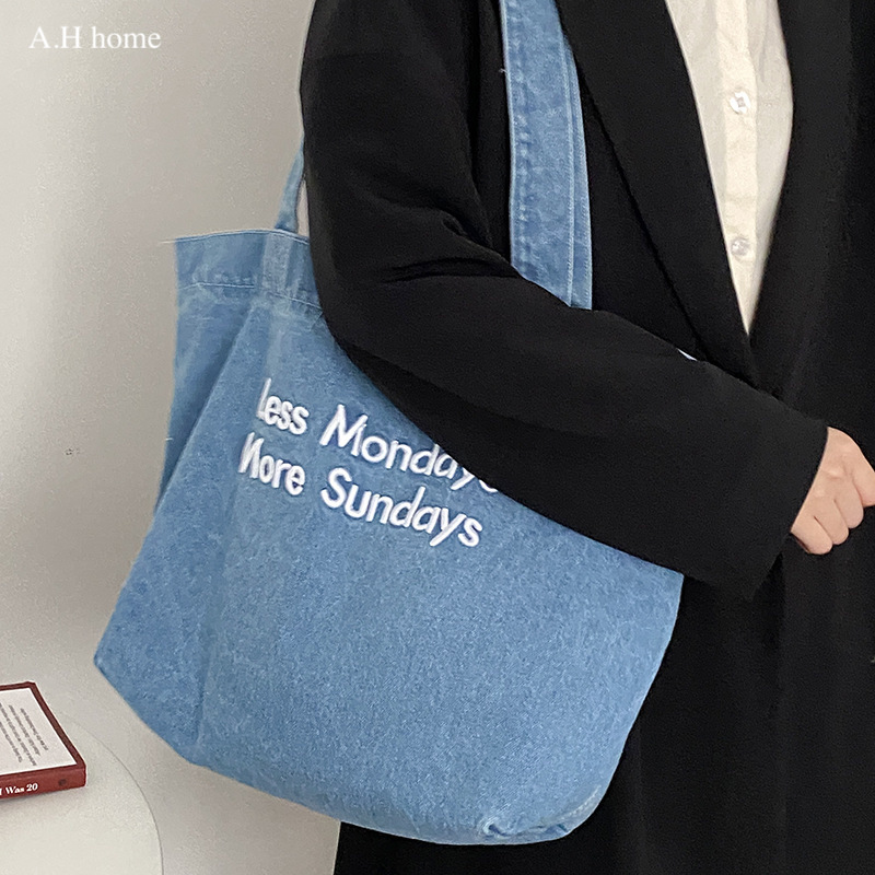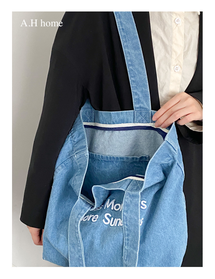/ 韓國ins字母刺繡拉鏈牛仔帆布包 /
