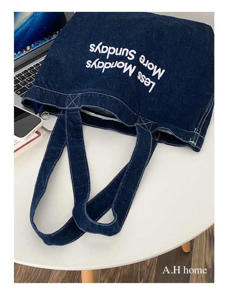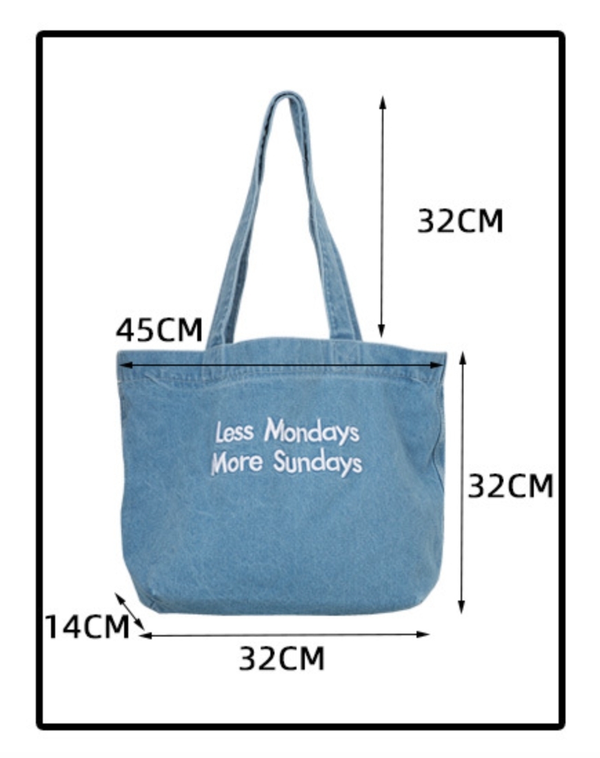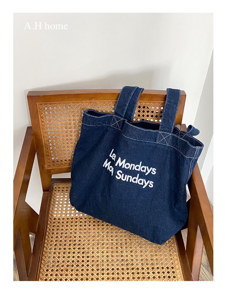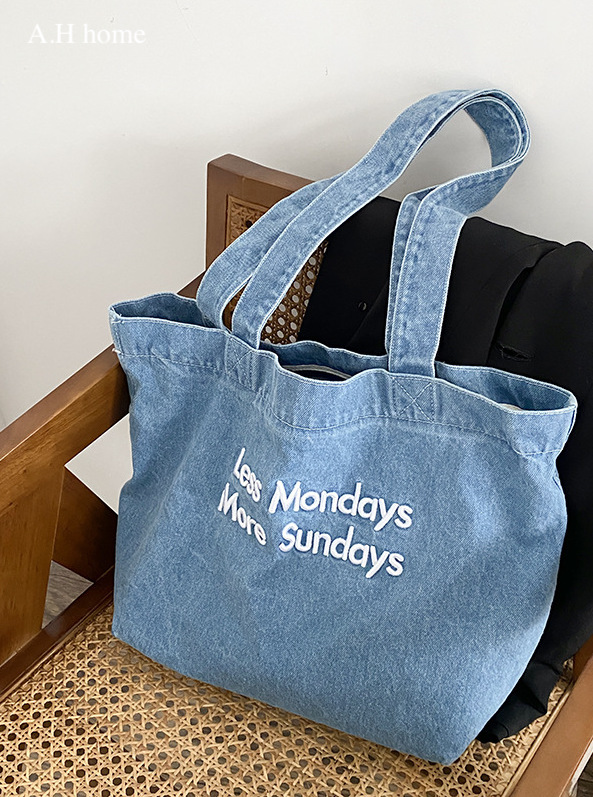 / 韓國ins字母刺繡拉鏈牛仔帆布包 /