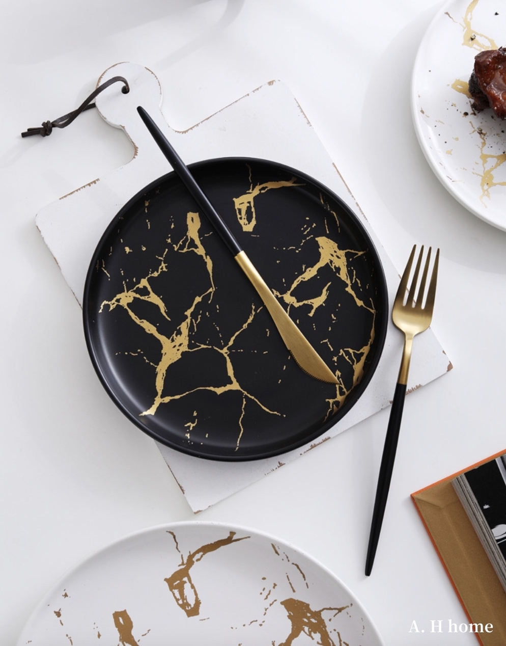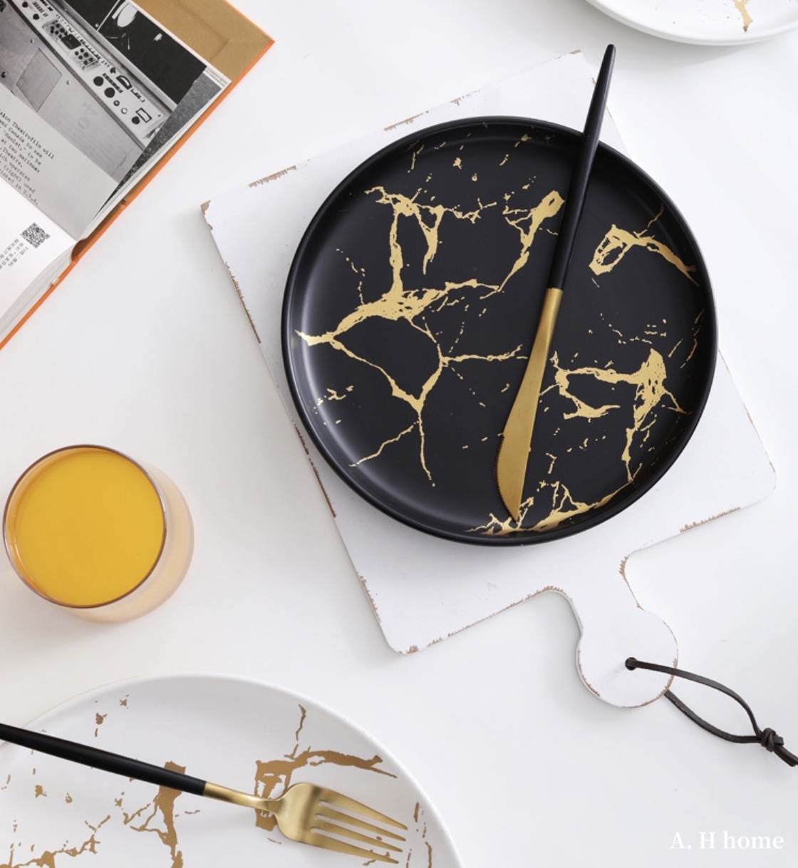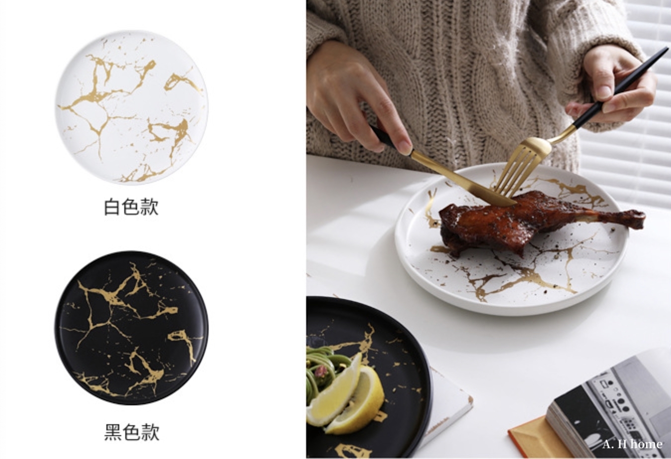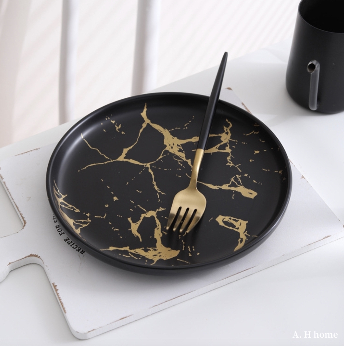 / 金線大理石圓形西餐盤 /