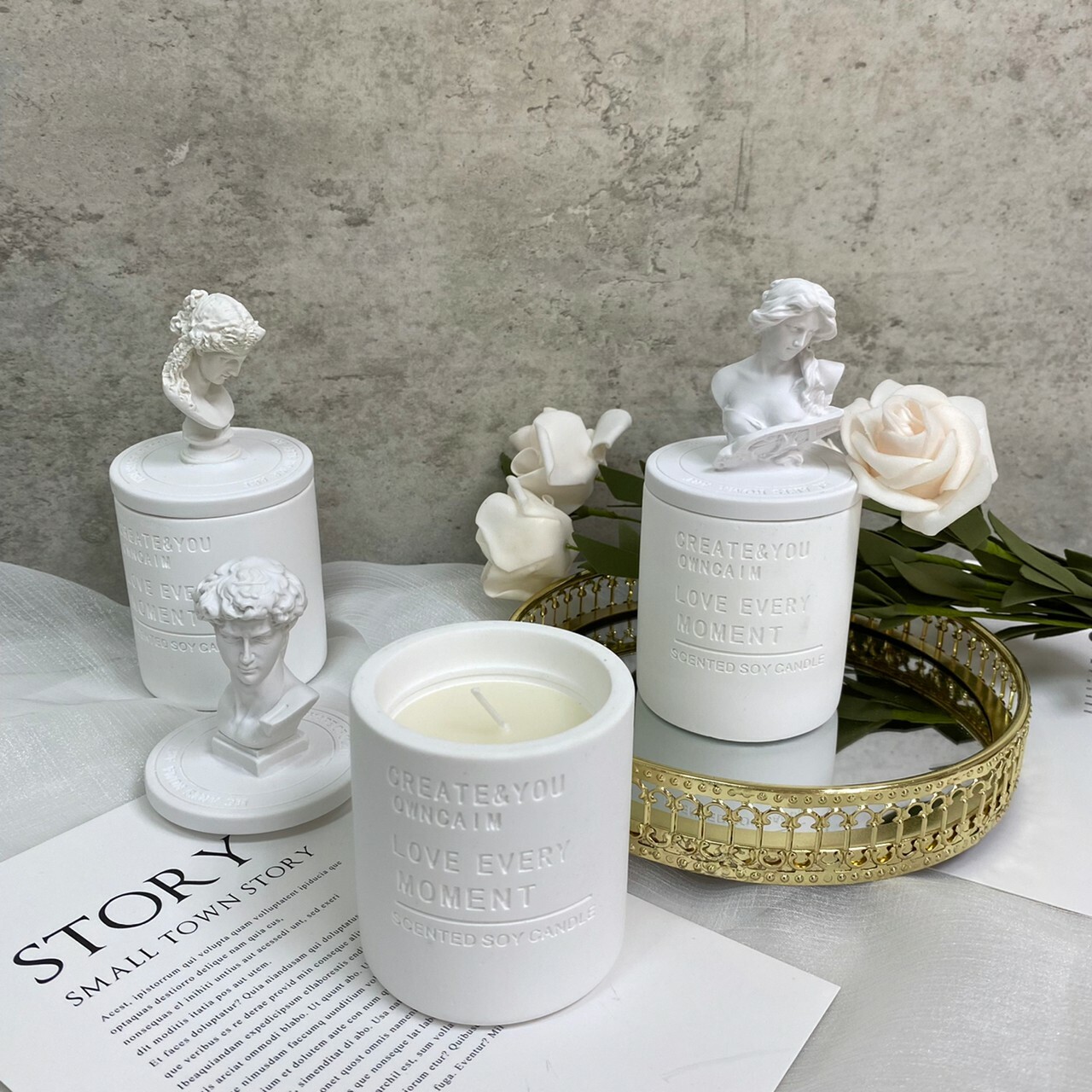 雕像杯蓋不會完全密合蠟燭杯,主要是防塵作用,雕像設計可增添藝術氣息,可當家飾品擺放,送禮也非常得體唷♡