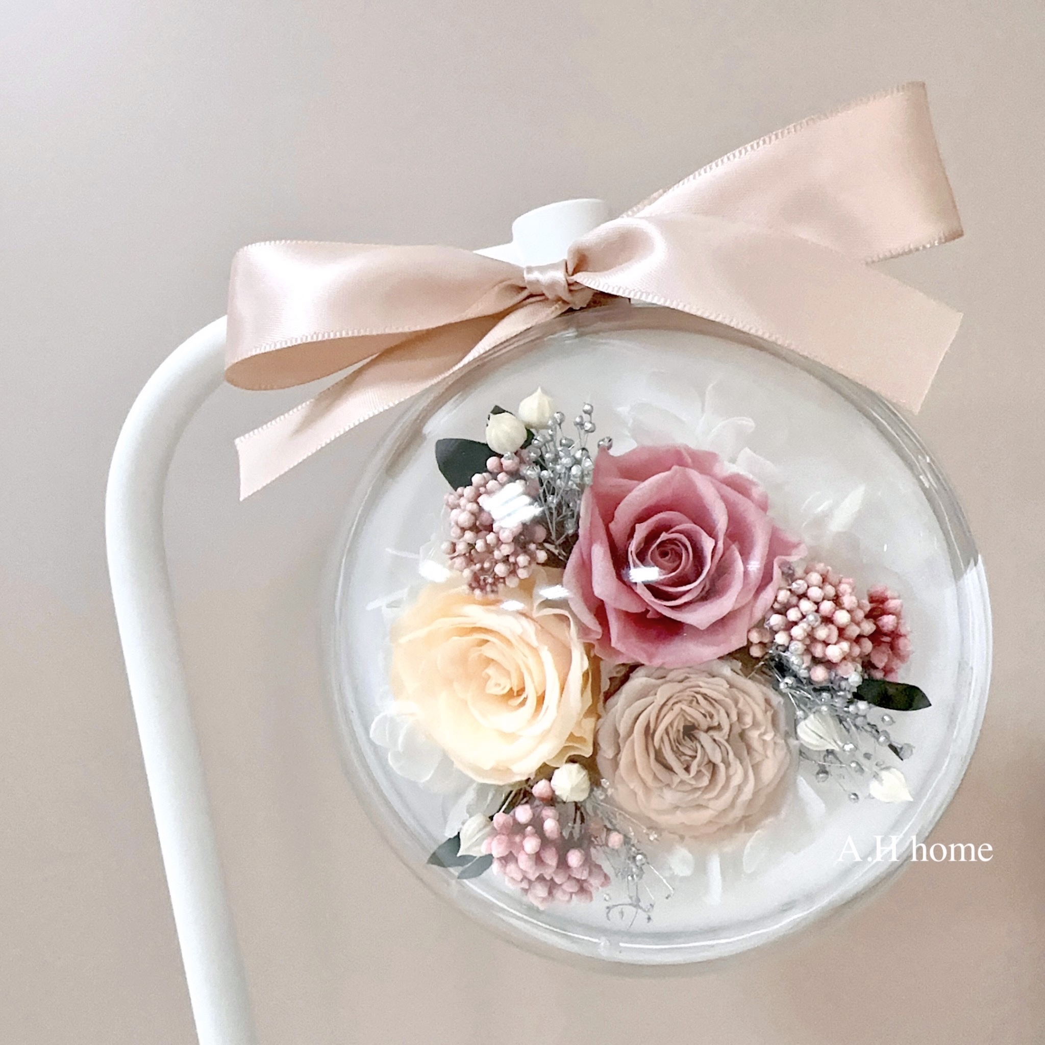 【材質】A級進口永生花、壓克力球、五金鍍銅