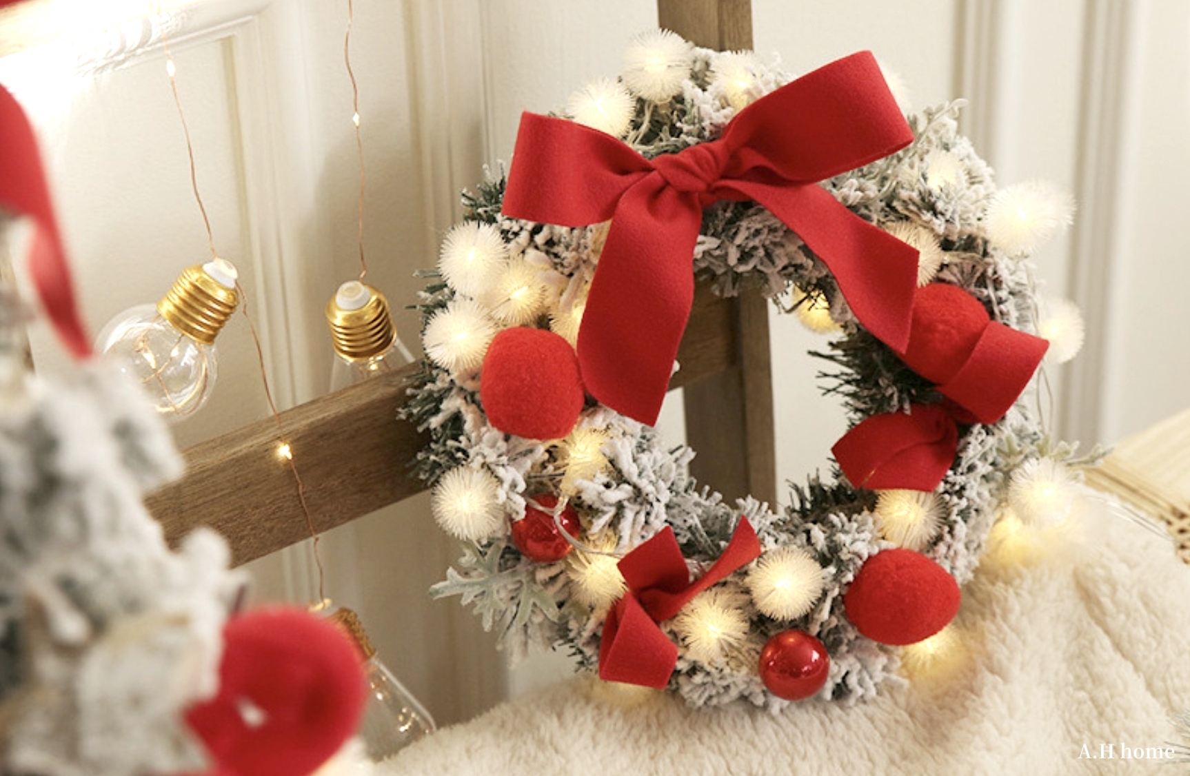 【內容物】落雪松圈/布藝/鐵絲/燈串