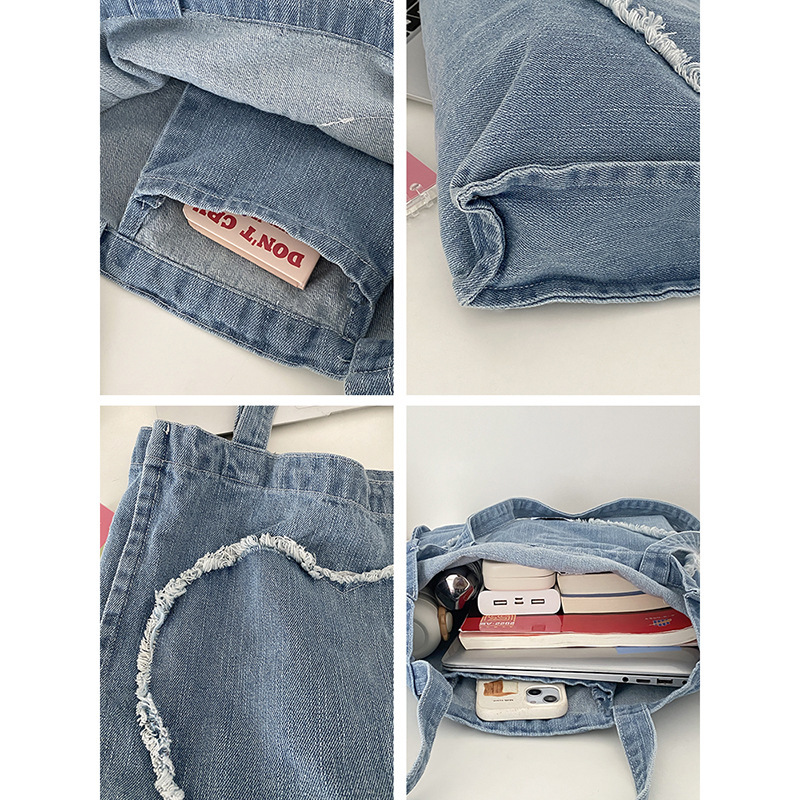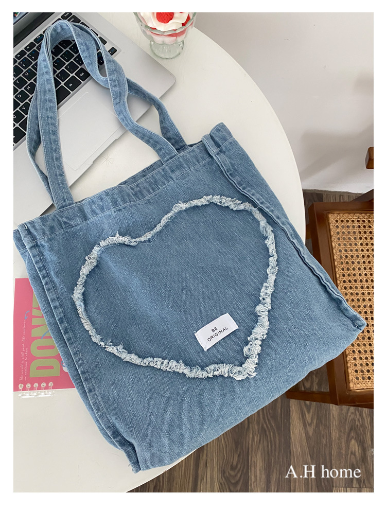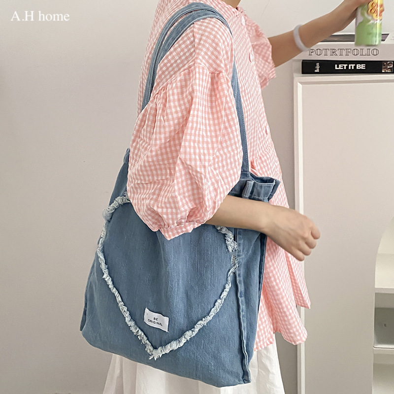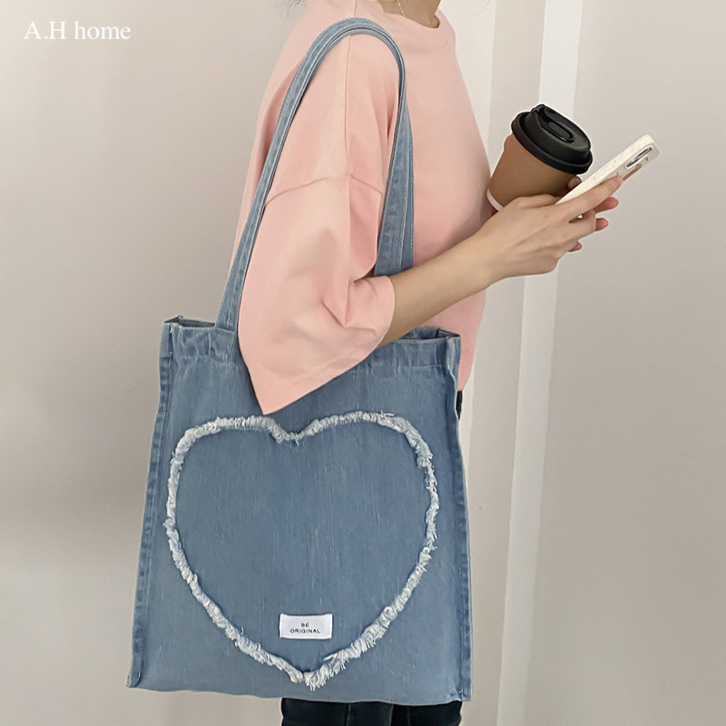 / 韓國ins愛心水洗牛仔帆布包 /