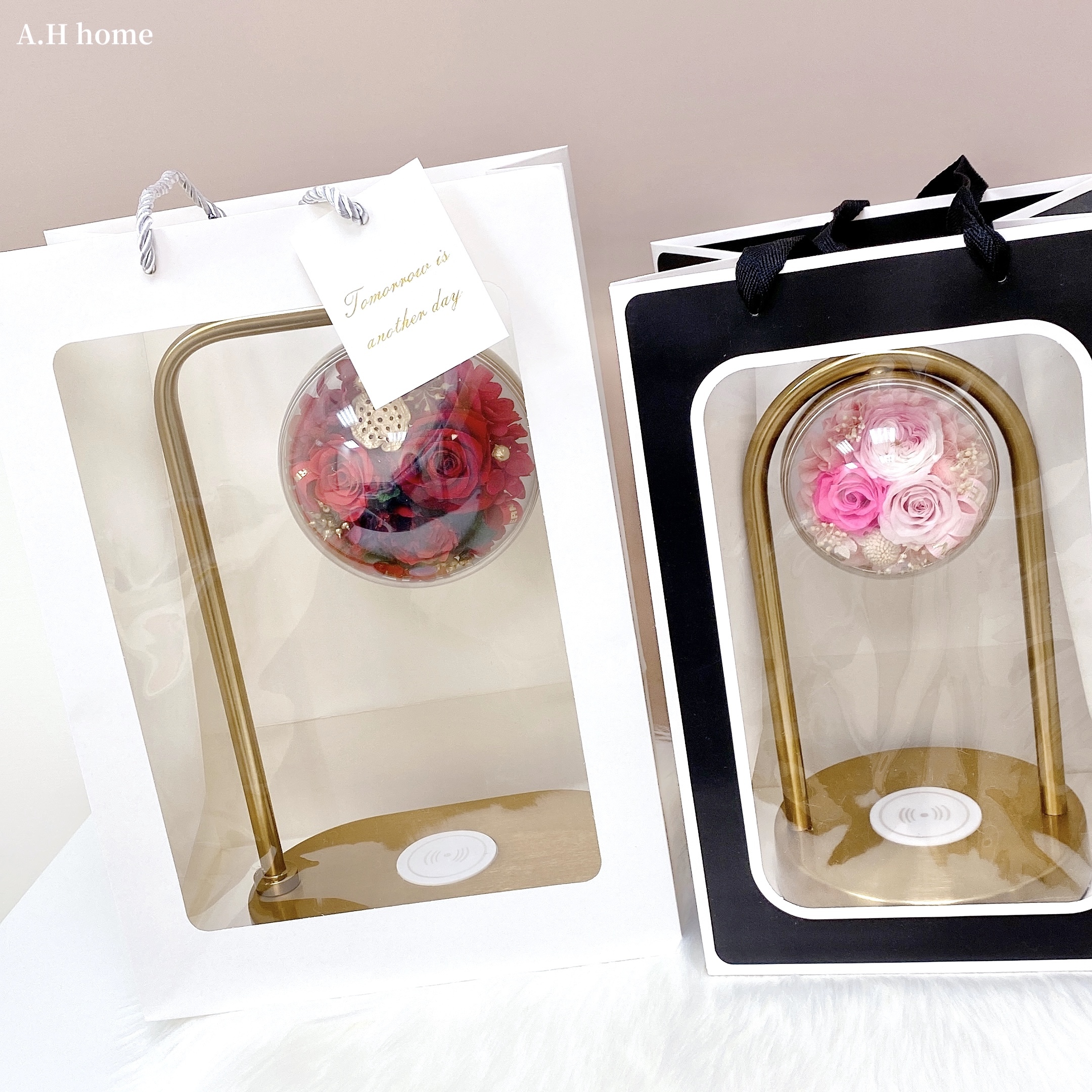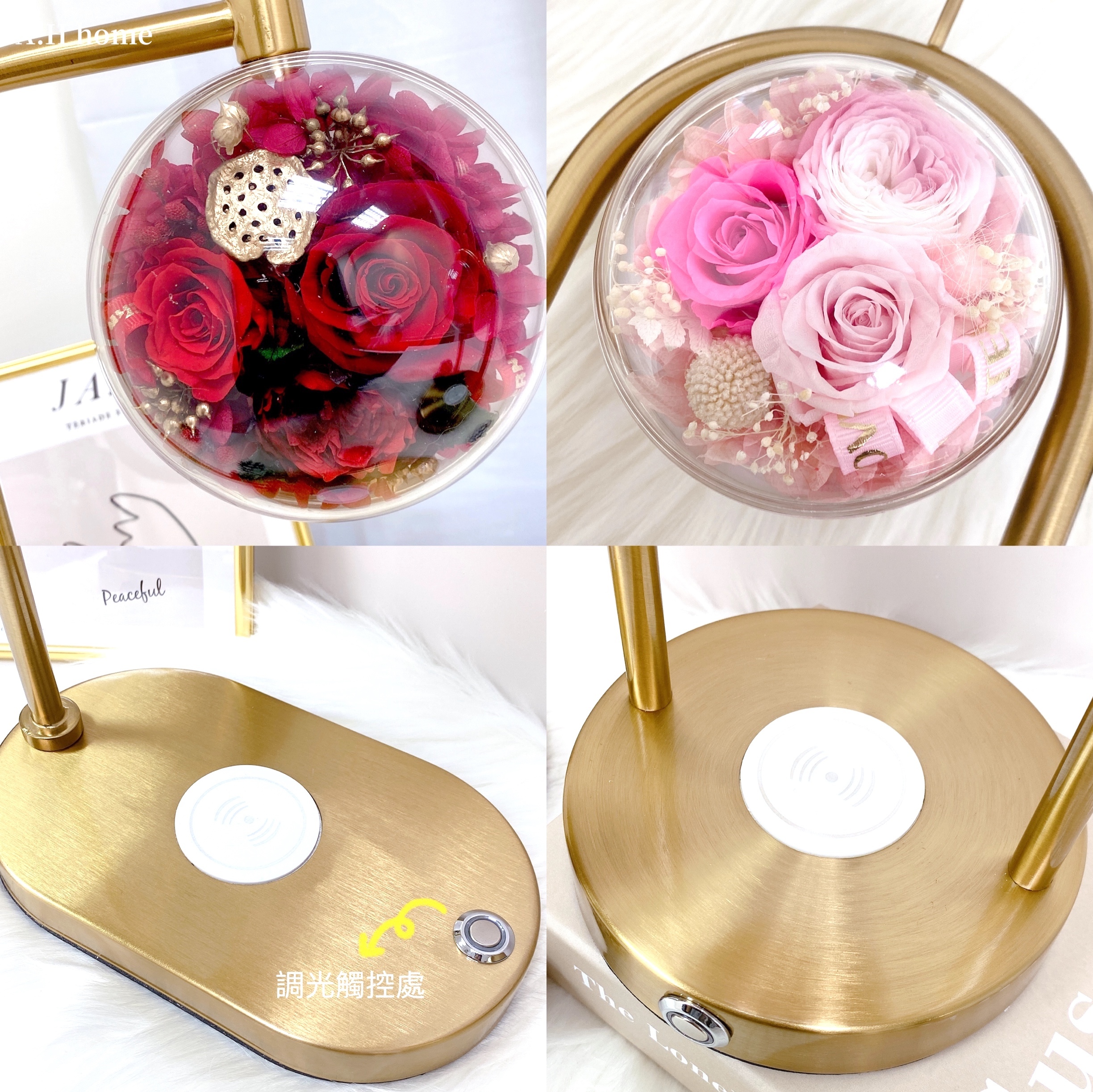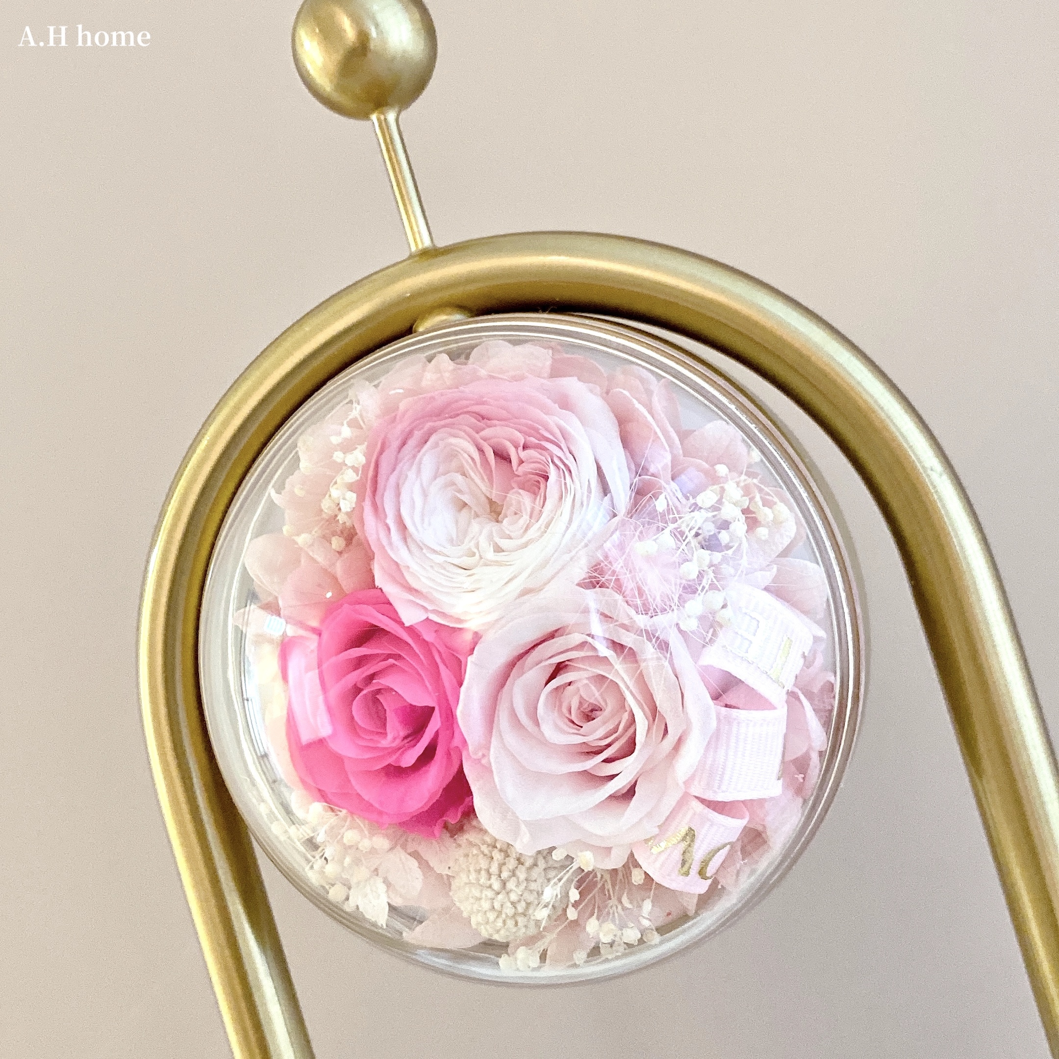 【材質】A級進口永生花、壓克力球、五金鍍銅
