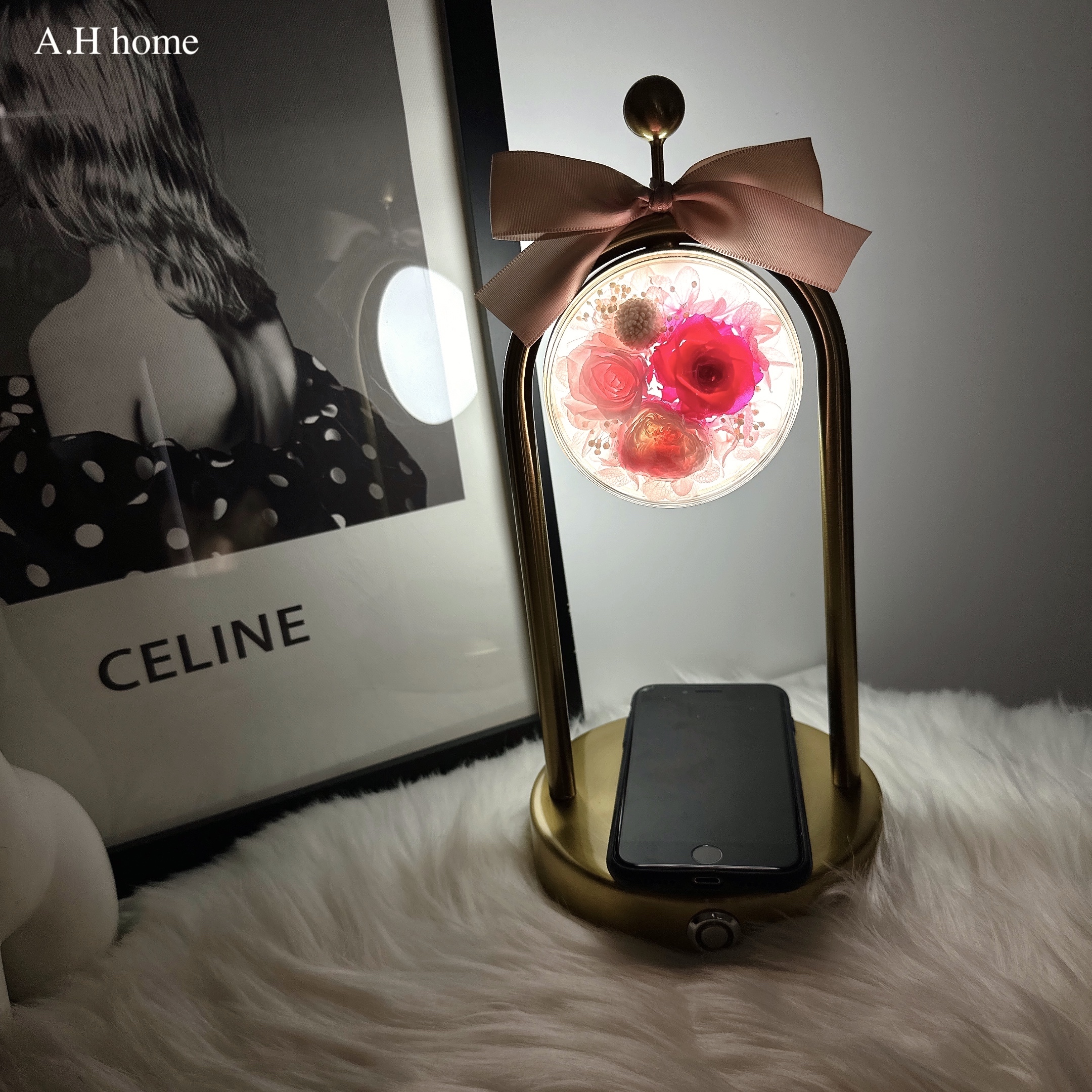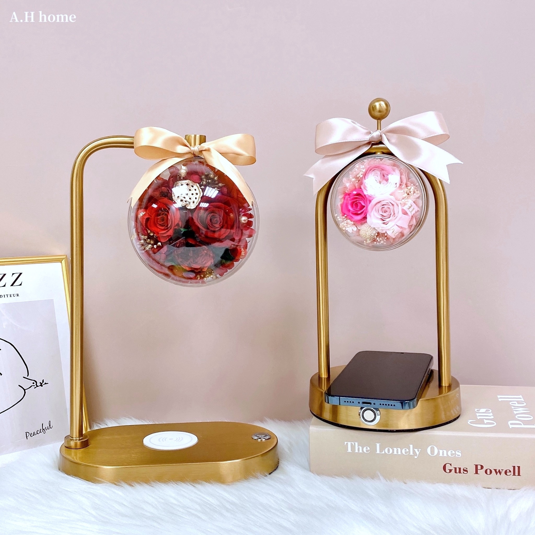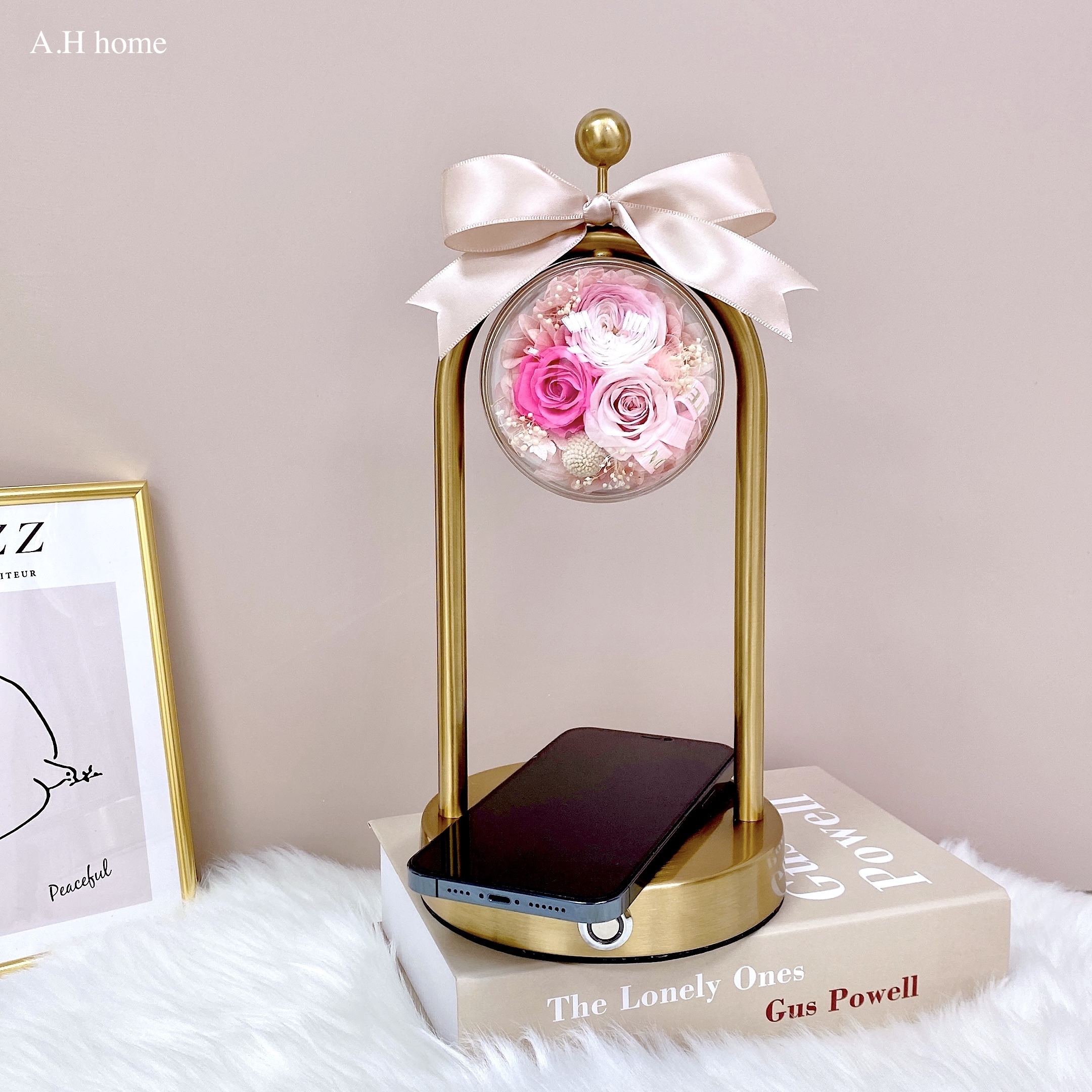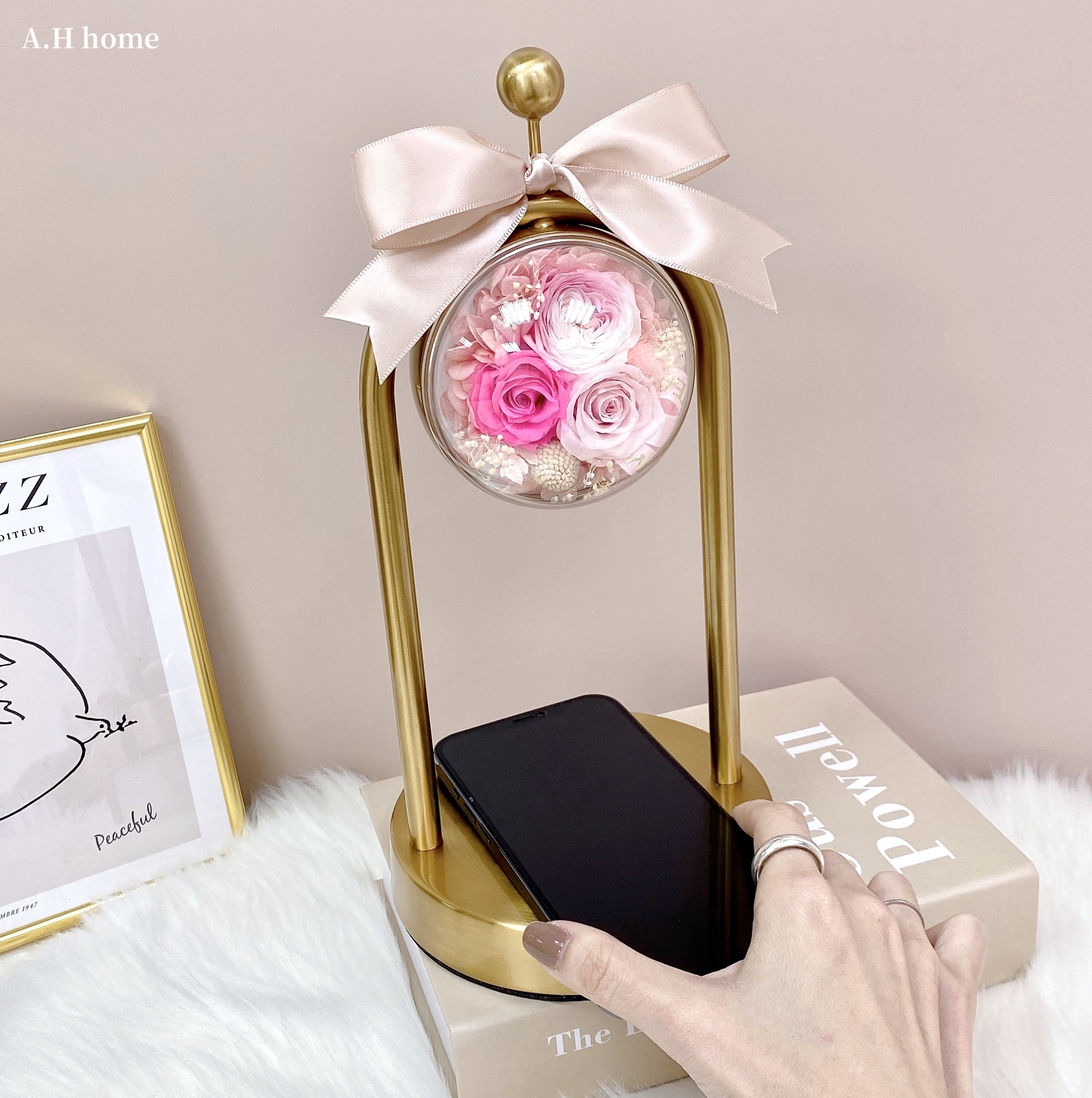 【材質】A級進口永生花、壓克力球、五金鍍銅